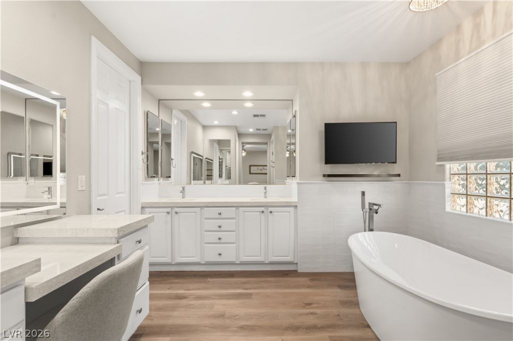 Located in the prestigious guard-gated Anthem Country Club, this exceptional estate showcases luxury living on an expansive .41-acre pie-shaped lot with a truly private, park-like setting. The resort-style backyard is an entertainer's dream?featuring a private pickleball/sports court, heated pool and spa, outdoor fireplace, covered patio, and lush mature landscaping offering ultimate privacy and incredible curb appeal. Spanning approximately 4,000 square feet, this impeccably maintained residence offers 5 bedrooms, 4.5 bathrooms, and a 3-car garage with AC. The beautifully renovated kitchen is the heart of the home, complemented by porcelain wood-look flooring throughout and refined finishes at every turn. The primary suite is a true retreat, featuring a modernized spa-inspired bathroom and a private balcony with breathtaking Strip views. A rare opportunity to own a move-in-ready luxury home with unmatched indoor-outdoor living in one of Henderson's most sought-after communities.
