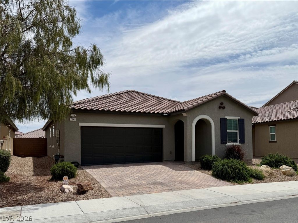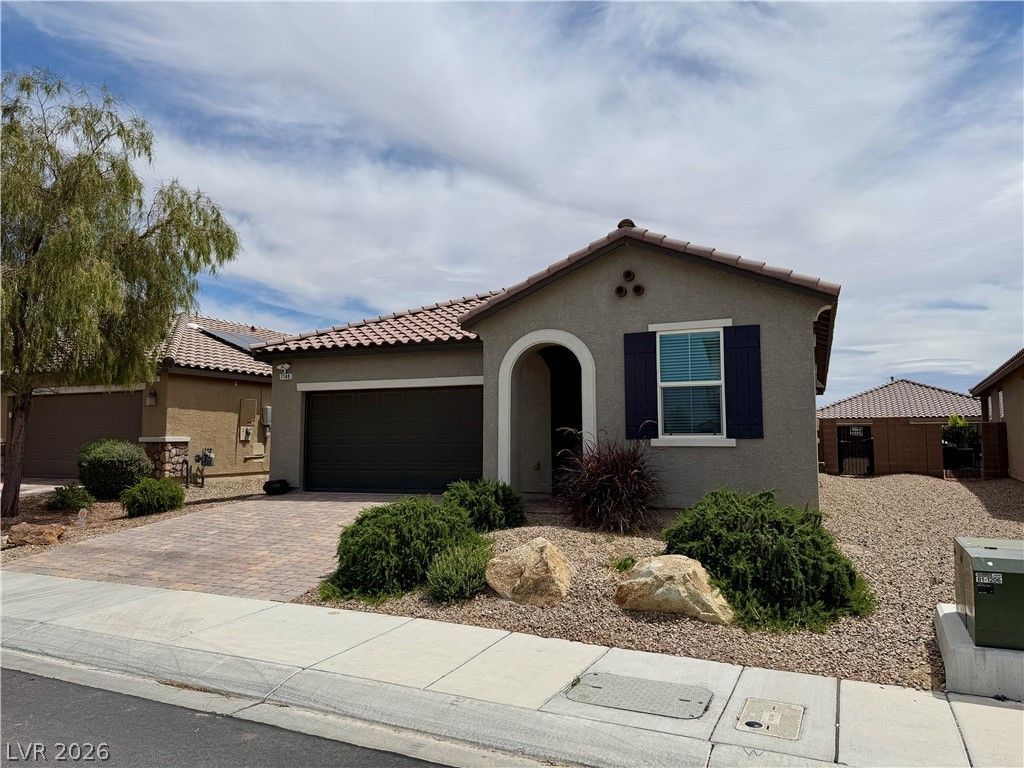 Welcome Home to This Beautiful Like New Single-Story Gem in Tule Springs! Step into modern comfort with this 3 bedroom, 2 bath home offering 1,585 sq ft of thoughtfully designed living space. This single-story layout features tile flooring throughout the main areas for a clean, durable feel, with plush carpet in all bedrooms and a luxury shower in the primary. The heart of the home shines with granite countertops, stylish pendant lighting, 9ft ceilings and upgraded ceiling fans and lights throughout. Enjoy energy savings and peace of mind with solar, tankless hot water heater, soft water loop, and a newer AC system. Window coverings are already in place, and the front door security gate adds an extra layer of safety and convenience.Outside, unwind on the covered patio, ideal for morning coffee or evening gatherings. The garage offers convenient storage shelves. This home combines practicality, style in one of North Las Vegas most desirable communities. Hurry it won't last long!